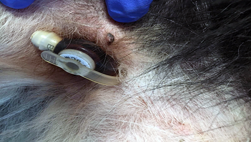 The most commonly performed procedures for urinary diversion for management of obstructive uropathies include urethral stenting and surgical placement of permanent cystostomy tubes. Average survival time after urethral stenting in dogs with transitional cell carcinoma is 2-3 months. Urinary incontinence occurs in approximately 50% of dogs following stent placement and clinical signs often recur due to stent obstruction by invasion / growth of the tumour. The placement of permanent cystostomy tubes has typically involved surgical intervention with the bladder approached and the tube placed via coeliotomy. While surgical placement of cystostomy tubes is effective, it is invasive and the large balloon / foley catheters typically used are cumbersome for owners to manage at home and are aesthetically unappealing.